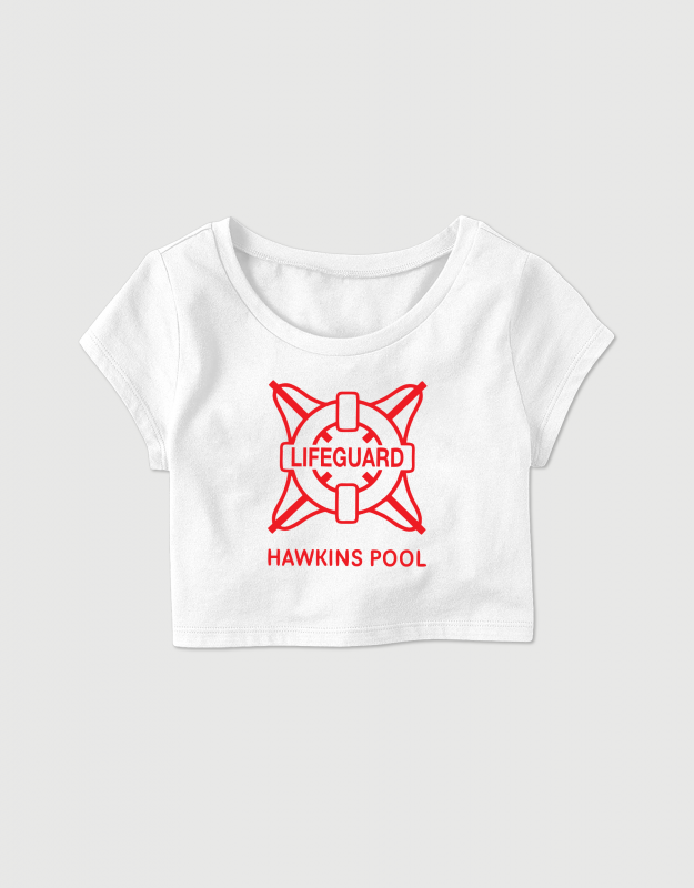 Μπλουζάκι crop top με τύπωμα Hawkins Pool